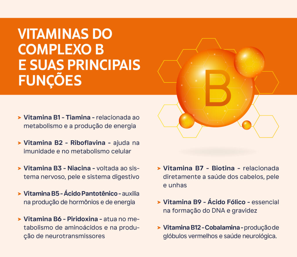 Tema amplamente pesquisado por cientistas, médicos e nutricionistas pela sua relevância em múltiplos sistemas do corpo, as Vitaminas que compõe o Complexo B são: B1 (Tiamina), B2 (Riboflavina), B3 (Niacina), B5 (Ácido Pantotênico), B6 (Piridoxina), B7 (Biotina), B9 (Ácido Fólico) e B12 (Cobalamina). Inúmeros estudos abordam a ação individual específica de cada tipo, mas resultados muito relevantes e positivos têm surgido em estudos que consideram a ação combinada e sinérgica de mais de uma vitamina do Complexo B.